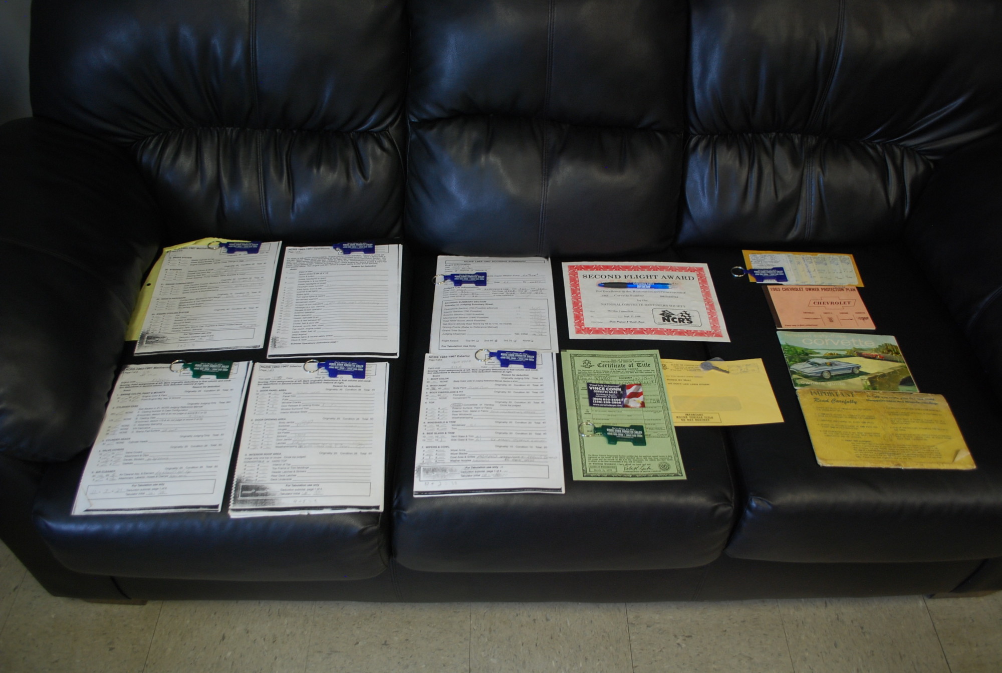1963 Corvette coupe, matching number 327/250 hp ,automatic transmission. Silver blue with dark blue interior, Recently purchased from the third owner. Have ownership records from day one including the original warranty pamplet and glove box folder from new! Car has very nice paint,body,interior,chrome,highly detailed engine compartment,and a nice frame. Excellent documentation including NCRS certified second flight award and judging sheets. Its ready to drive and enjoy today.