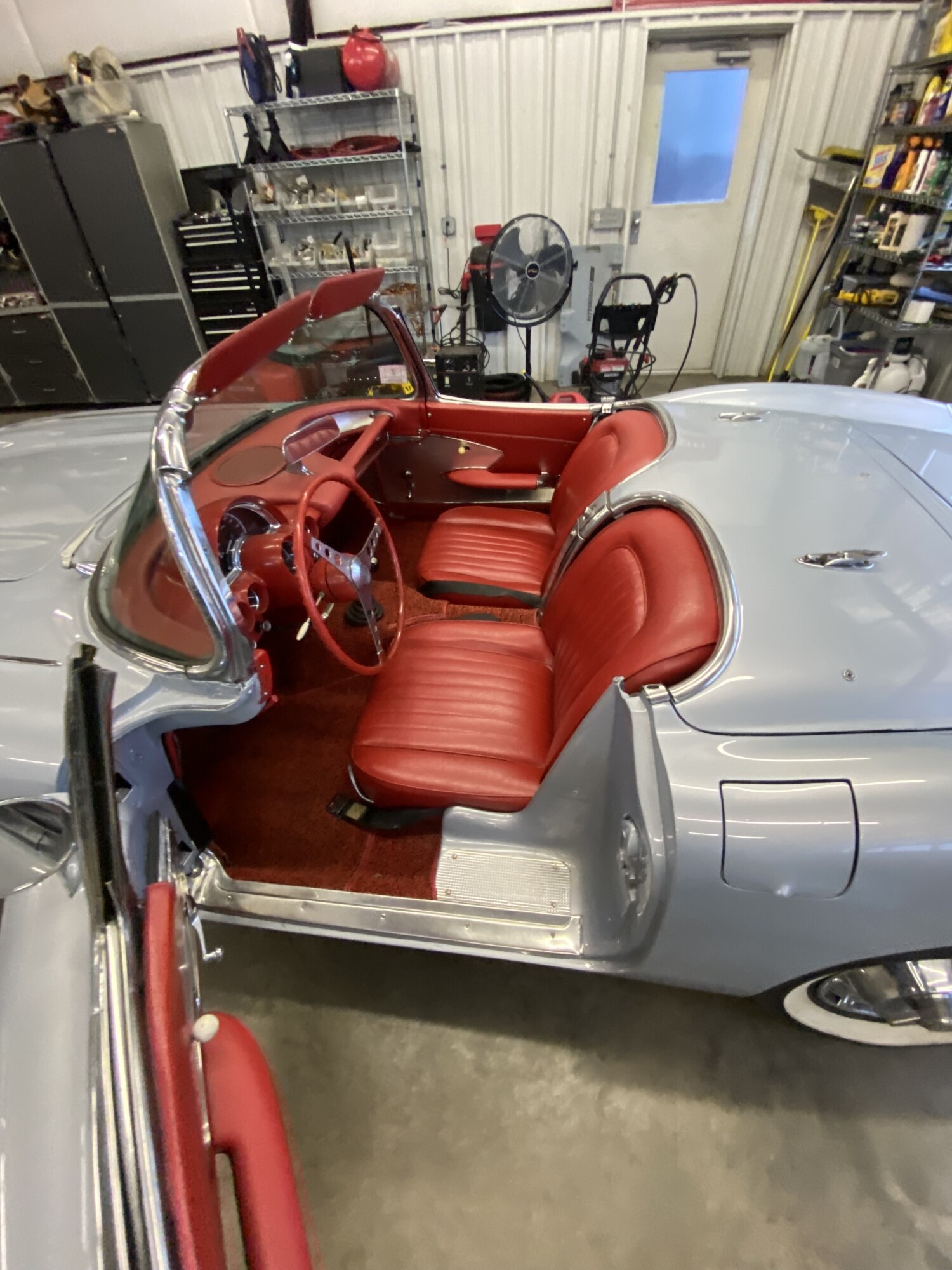 1960 corvette convertible, matching number 283/230 hp , 5 speed manual. Sateen silver with red interior.